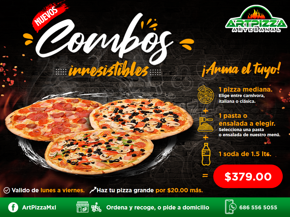 The menu at Art Pizza - Anáhuac offers a variety of satisfying dishes that cater to a range of tastes. One standout item is the Tony Fettuccine, a creamy pasta that combines rich flavors for a comforting experience. For those seeking something with a bit of spice, the Champiñón Salchicha Italiana Y Cebollita Morada is a must-try, blending savory mushrooms with spicy Italian sausage and sweet red onions. The wood-fired pizzas are particularly noteworthy, with the Pizza A la Leña de Champiñones offering a delicious earthy mushroom topping that perfectly complements the smoky flavor of the crust. The Mitad Margarita Mitad de la Casa pizza is an excellent choice for those who want to enjoy two flavors in one, balancing the classic simplicity of a Margarita with the heartier options of the house pizza. For a more traditional experience, the Pizza Italiana brings a classic Italian taste, and the Pizza Margarita Mediana satisfies with its straightforward, fresh toppings. Each dish highlights the restaurant's commitment to quality and flavor, making it a great spot for any pizza lover in Mexicali.
